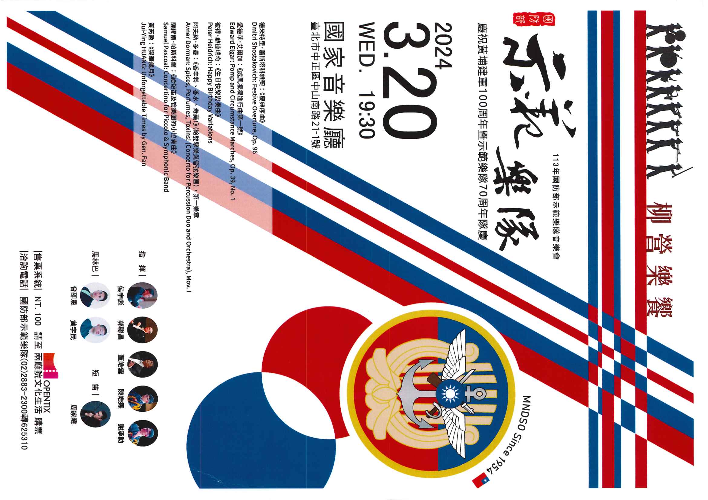 四、隨文檢附演出資訊1份,若有相關問題可電洽詢國防部示範樂隊承辦人,電話:(02)2883-2300轉625310。