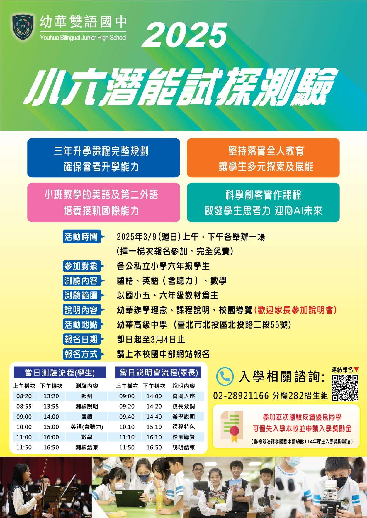 七、檢附「114幼華小六潛能試探測驗」活動簡章電子檔,惠請 協助於貴校網頁連結公告。
