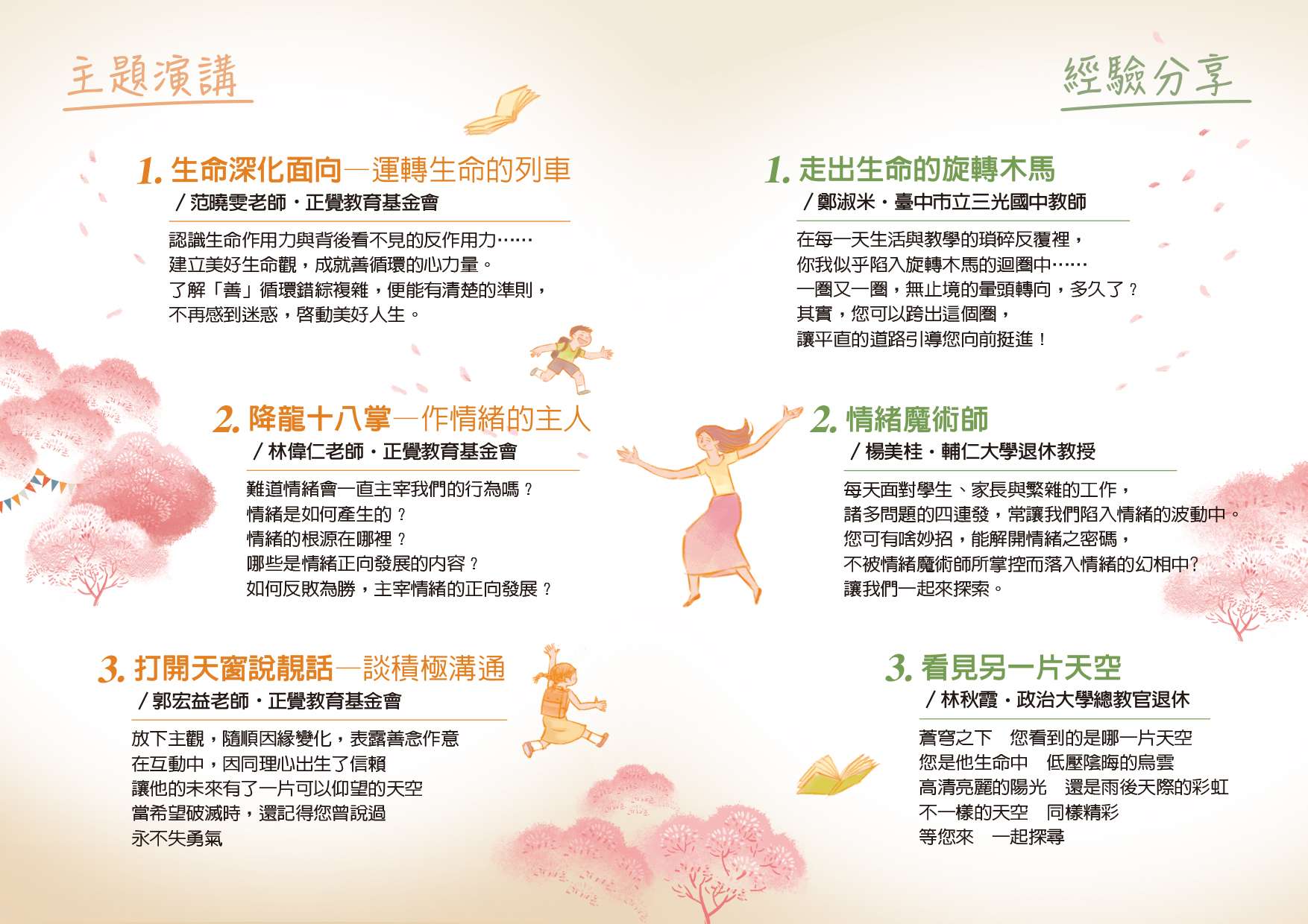 財團法人正覺教育基金會合辦2023年生命教育「生命的圓滿——尋覓教師的春天」教師研習活動,規劃如 下: