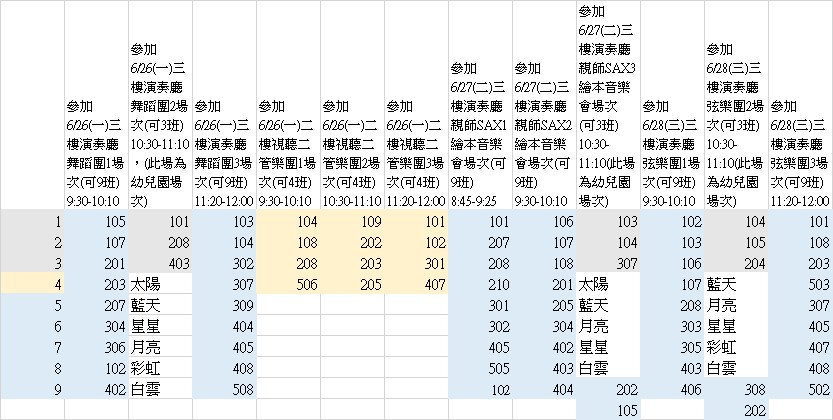 請各班詳參以下班表,有問題請聯絡訓育組同佑,謝謝。