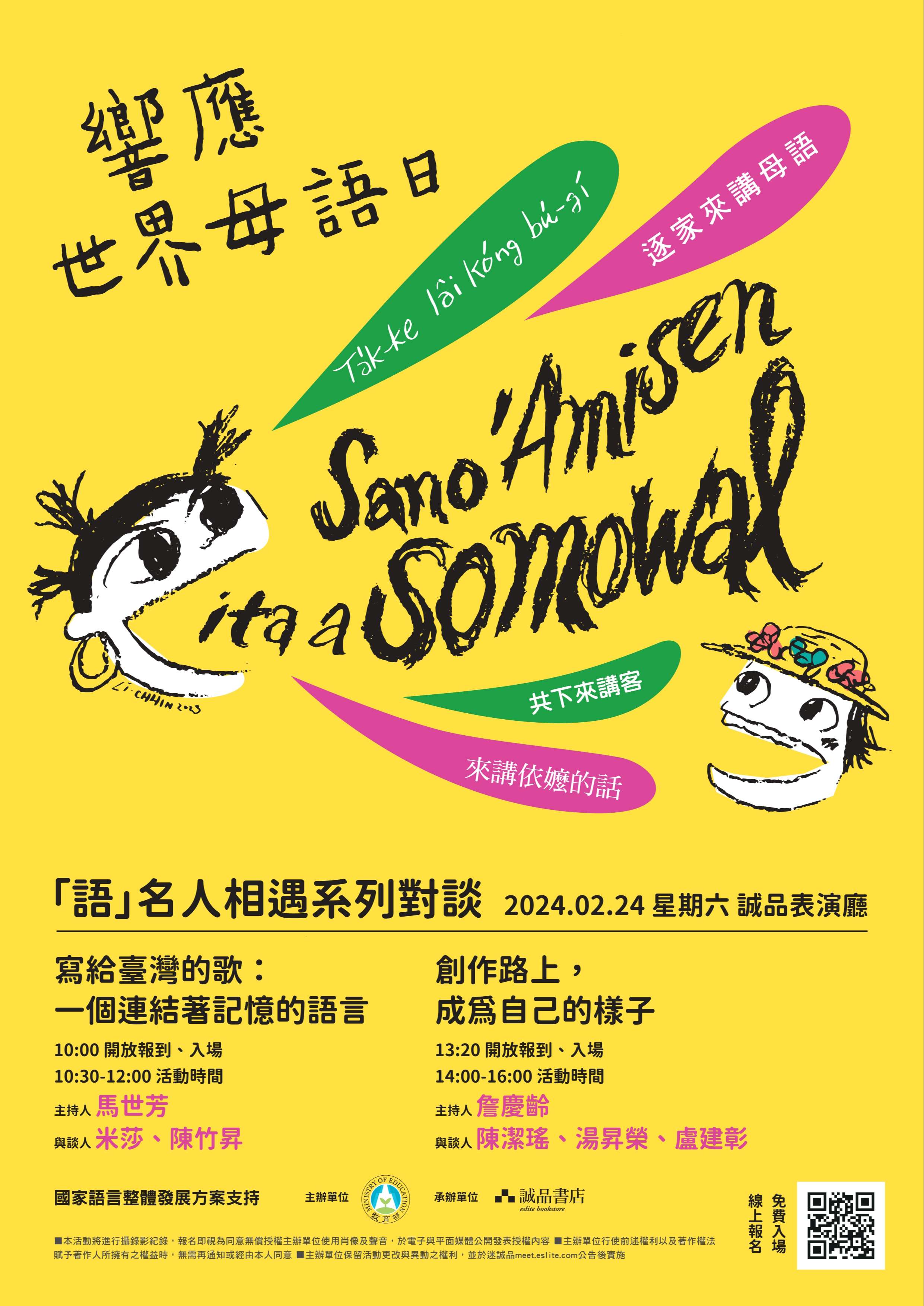 為響應2月21日世界母語日,復振、推廣面臨傳承危機之國家語言 教育部謹訂於113年2月24日(星期六)於誠品生活松菸店辦理「113年響應世界母語日」活動