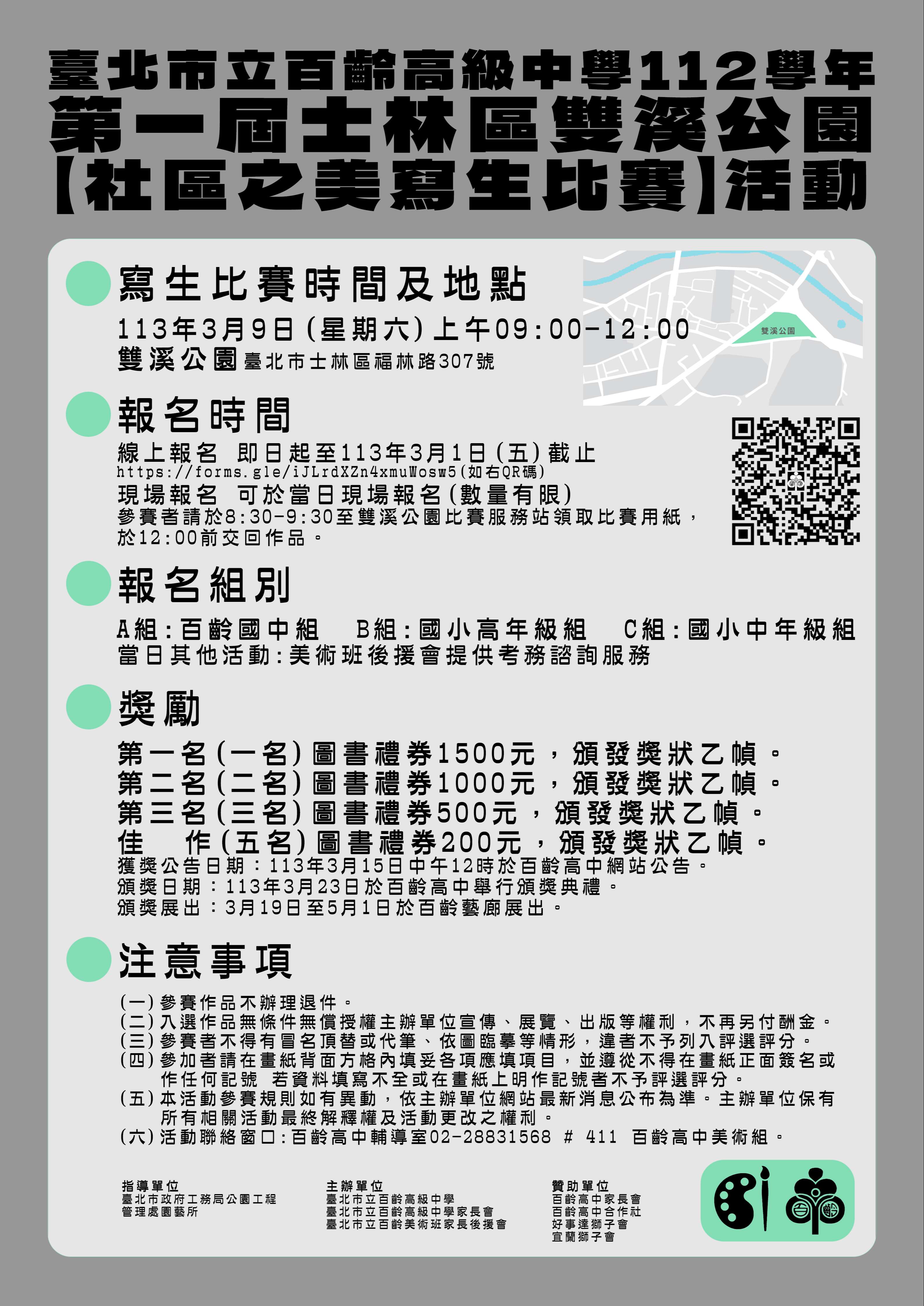 諮詢/聯繫電話:02-28831568 # 411 百齡高中美術組。