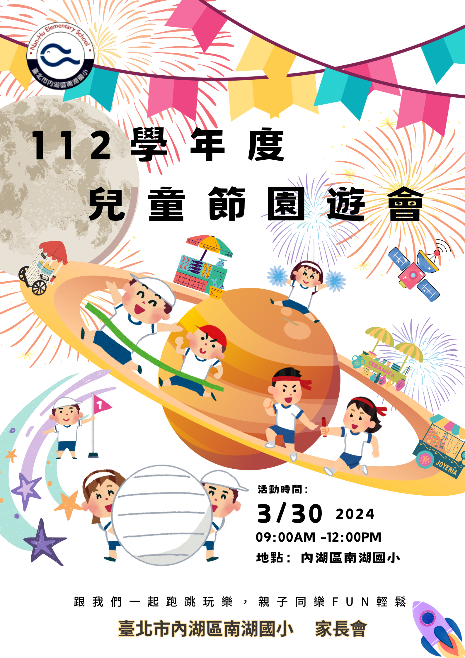 南湖國小112學年度兒童節園遊會 親子同樂FNN輕鬆,各種好吃好玩等你親臨體驗 地點:南湖國小 時間 2024/3/30 9:00Am -12:00Pm