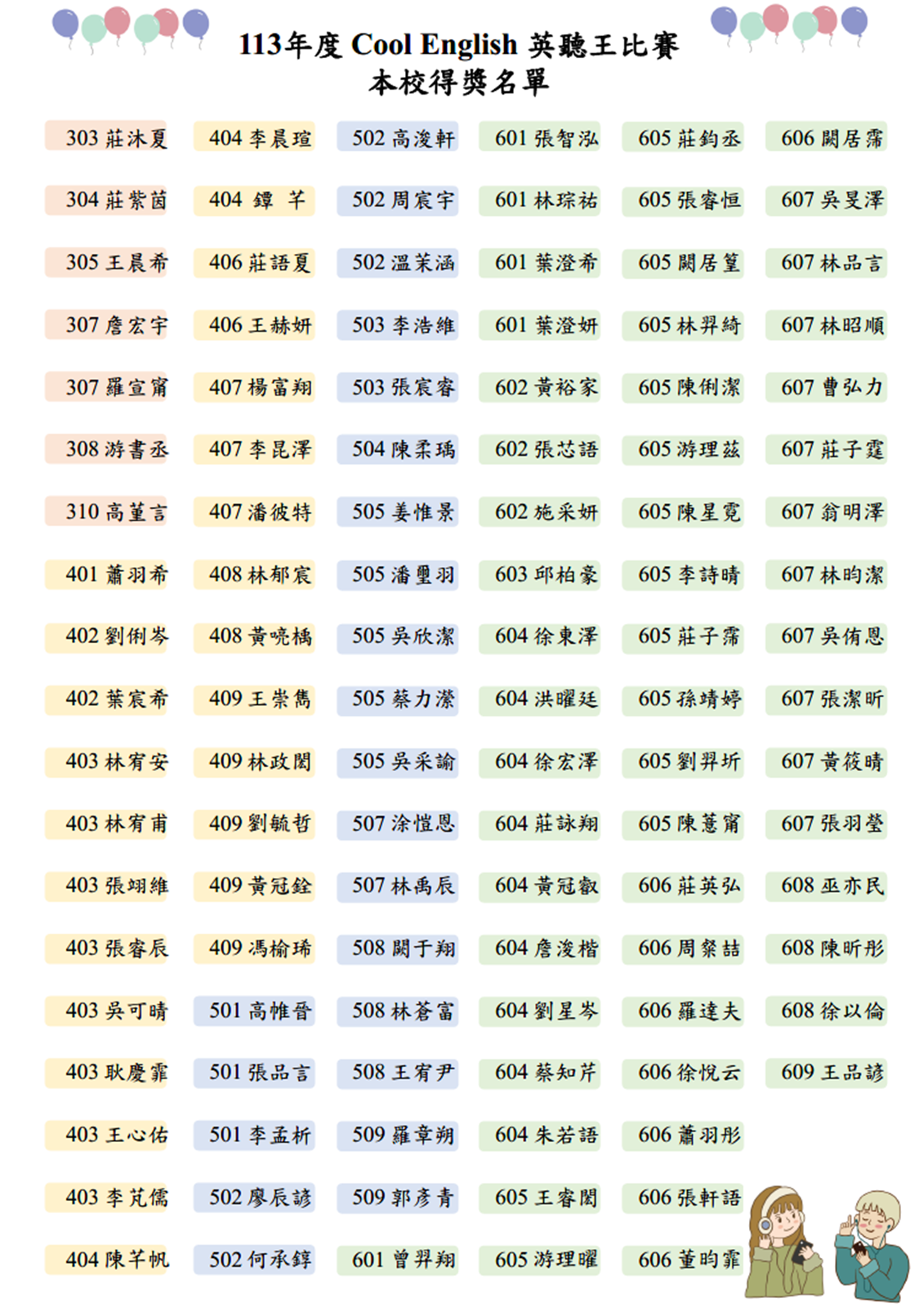🎉賀!本校學生參加 Cool English 英聽王比賽,共111人獲獎!