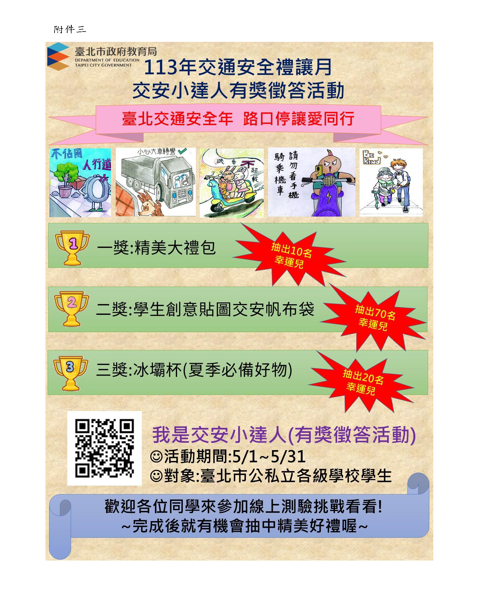 各位交安小達人,作答抽獎的機會來囉!