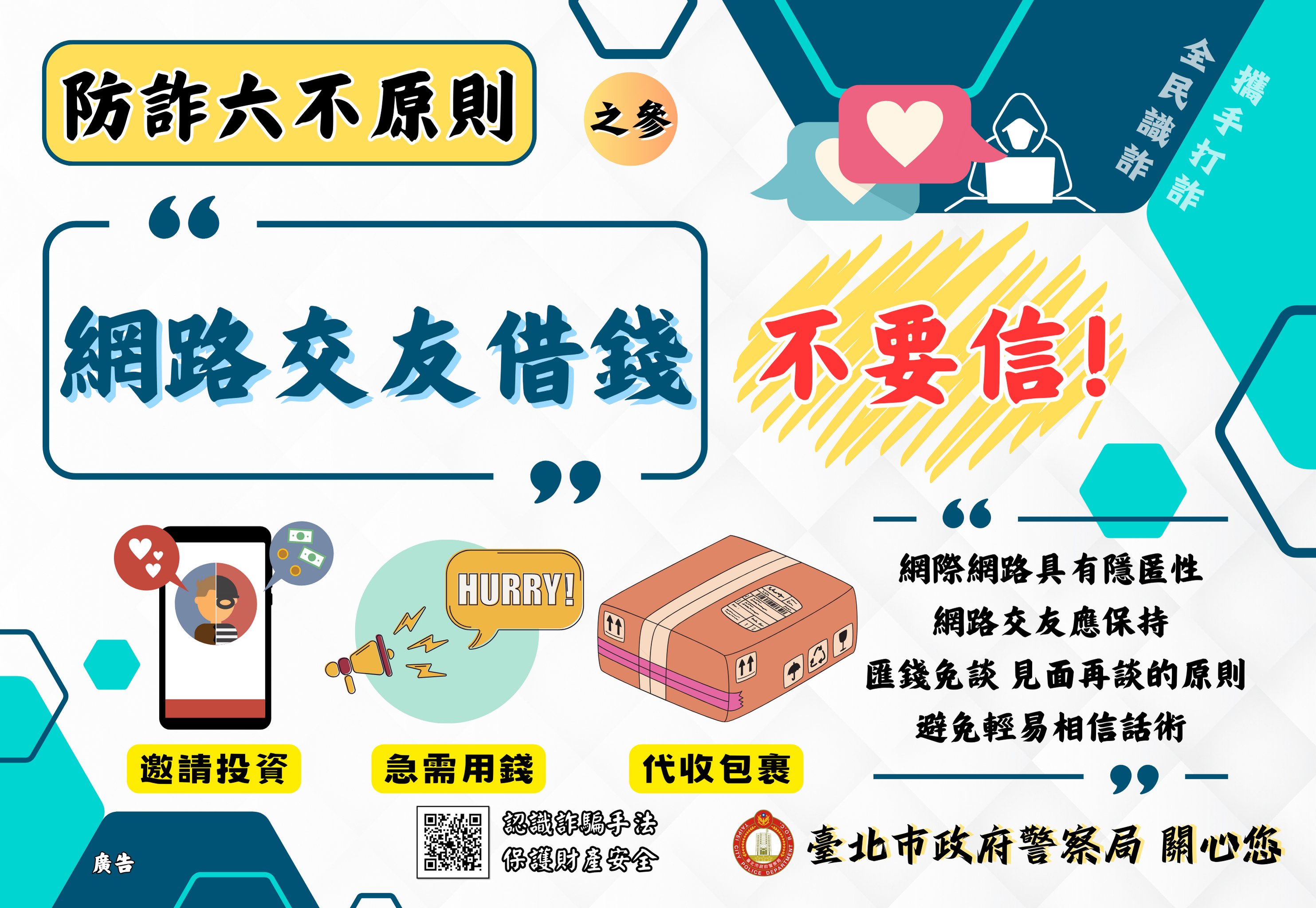網路上,任何轉帳、匯款、提供個人資料的行為皆伴隨詐騙風險,無論何種情況都應保持警覺,謹慎評估。
