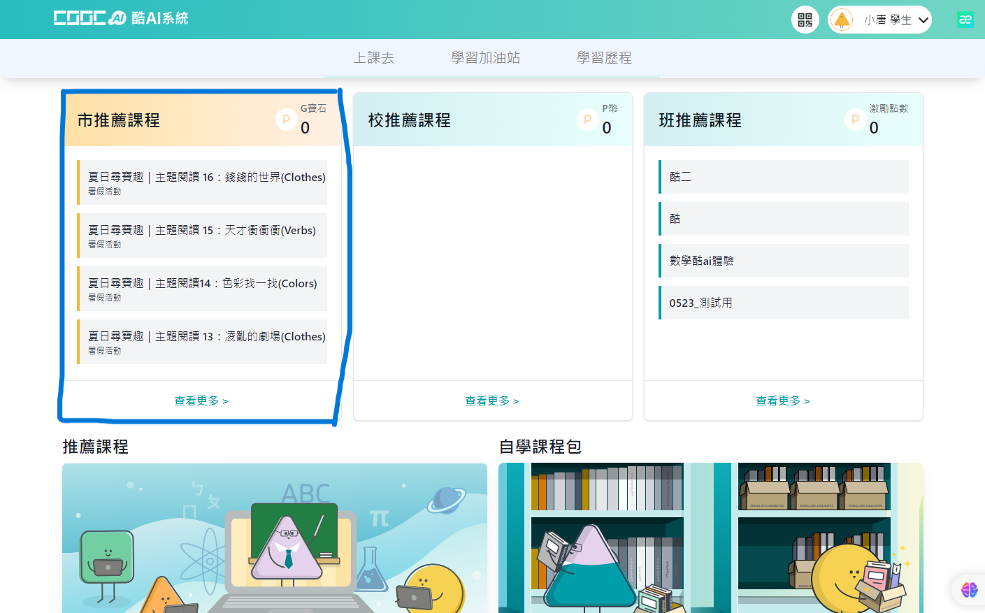 進入酷AI的首頁-->市課程包推薦-->查看更多,訂閱完成後即可累積局寶石