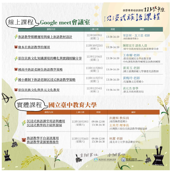 (一)線上課程於Google Meetg 上課,實體課程於國立臺中教育大學上課。