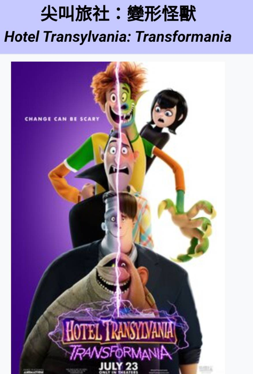11/8(五)7:00~8:40 蚊子電影院,片名:尖叫旅社:變形怪獸