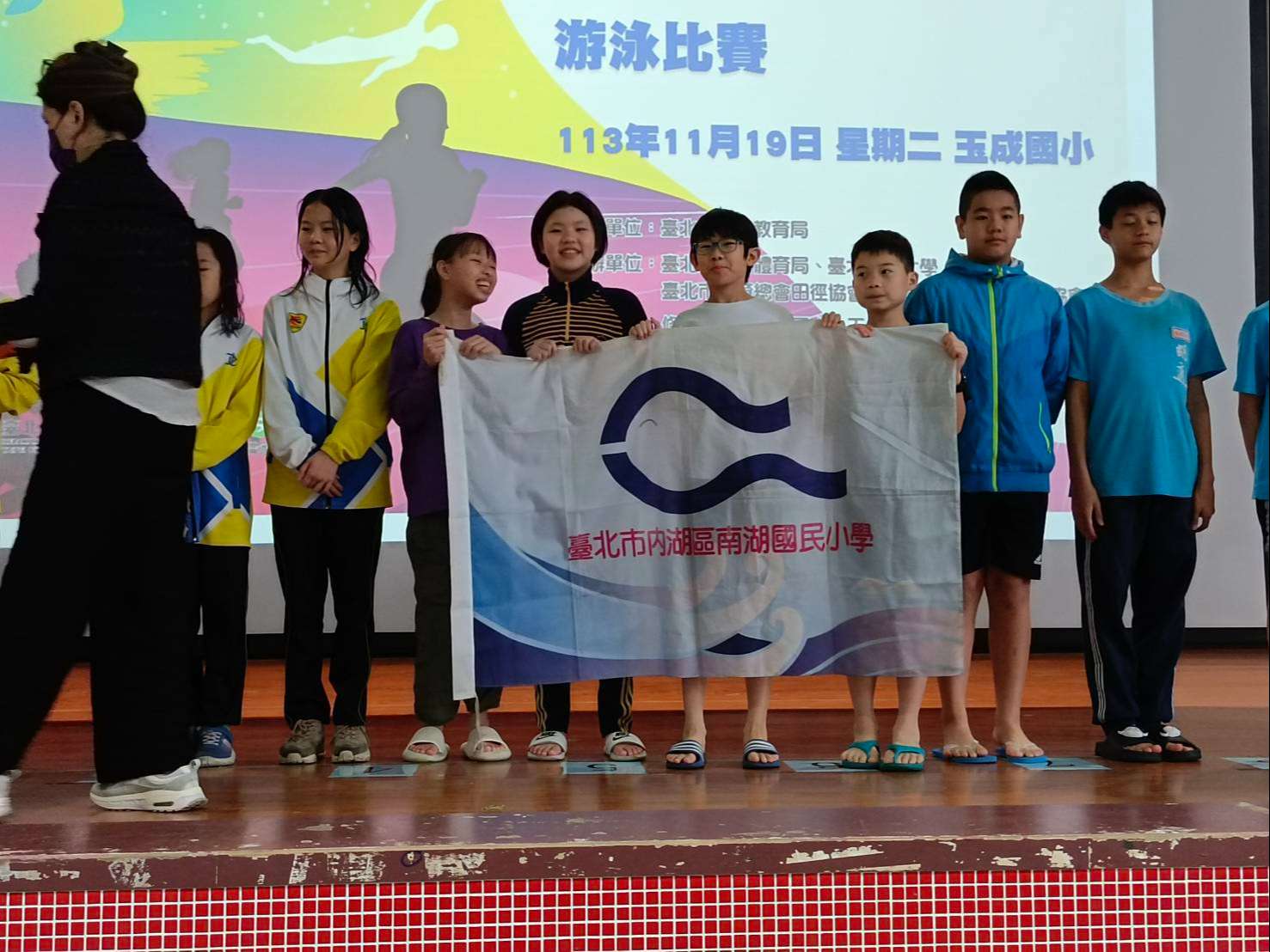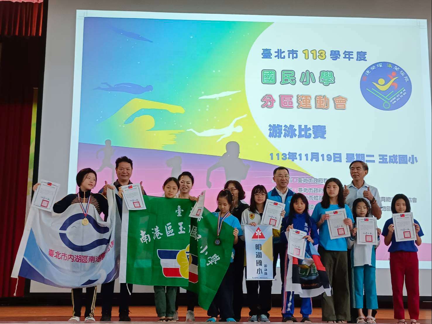南湖泳隊學生於113年11月19日參加臺北市國小東區運動會游泳比賽,