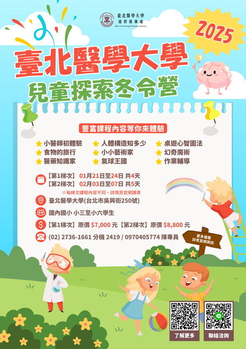 一、臺北醫學大學為鼓勵國小學生參與學習活動,辦理相關醫學課程及學習活動,希望能增進對醫藥及日常健康的知識。