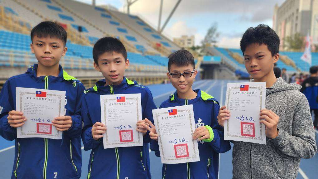 11.六年7班林熙恩、六年6班蔡昌杰、詹承瑀、六年4班李柏鈞榮獲男生甲組4X100公尺接力第五名,成績56.18秒