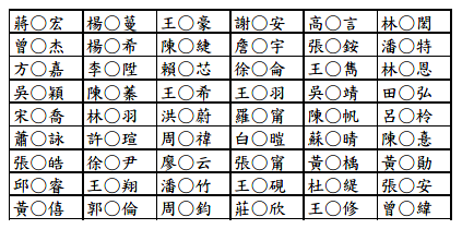 依序備取名單: 王○丹、李○儒、葉○宇、廖○勝、陳○元、陳○安
