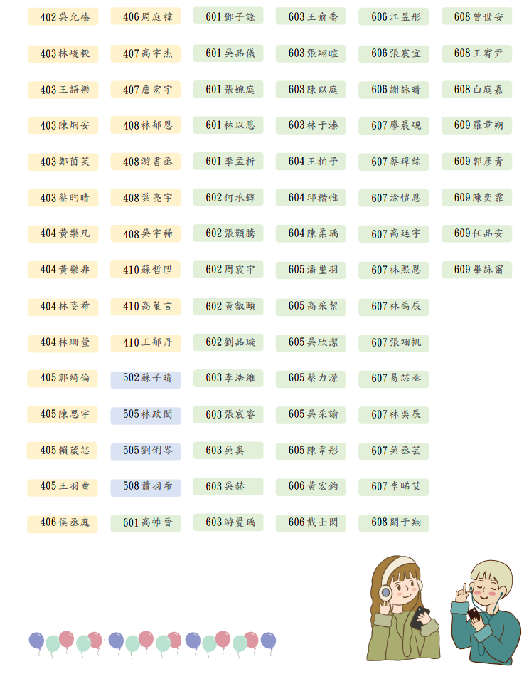 感謝本校英語團隊郭慧珍老師、劉昱君老師、張毓庭老師、陳思婷老師、吳貞瑩老師、楊勝惠老師、周琦娟、曾佳琪老師用心指導。